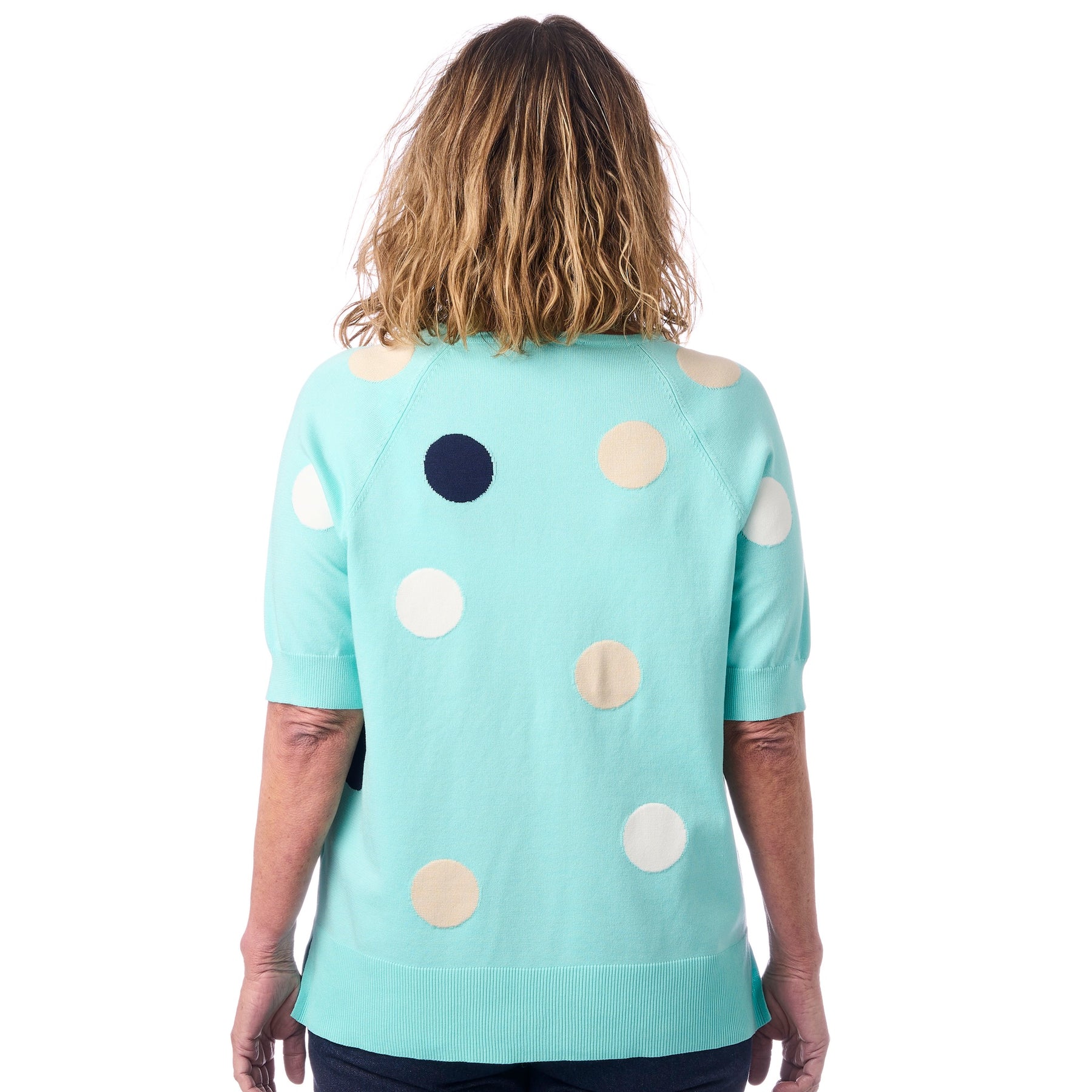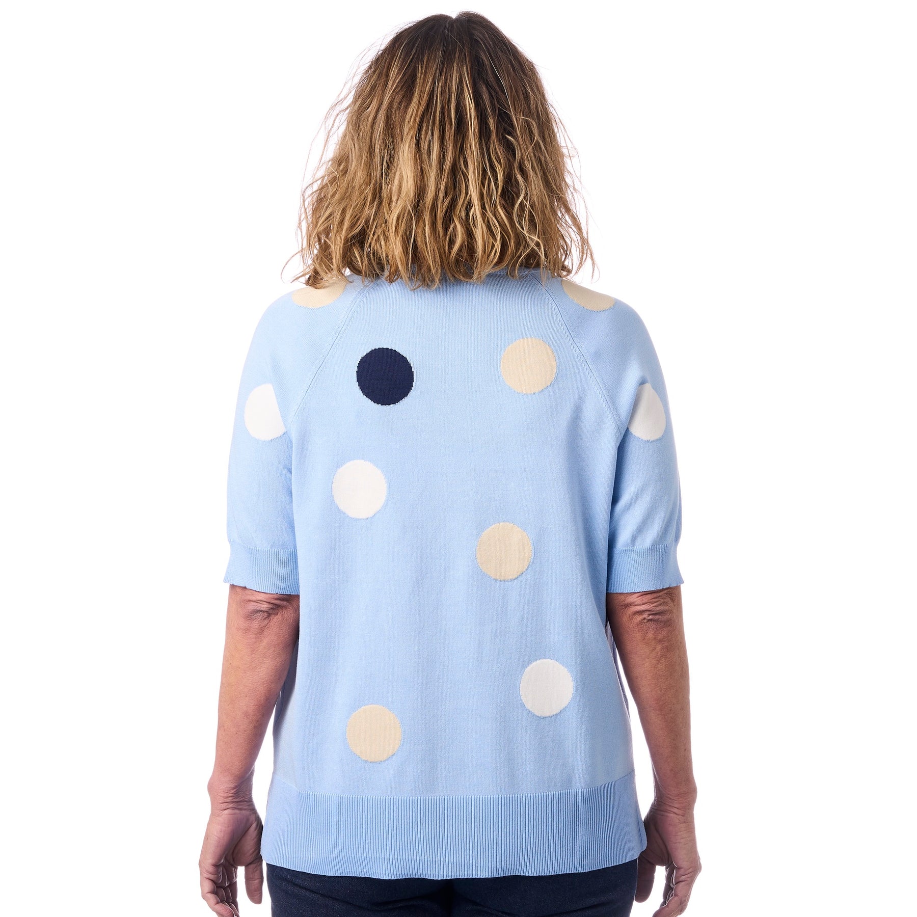 De store prikker i navy, hvid og cremé skaber et muntert og iøjnefaldende mønster, der løfter selv den mest afslappede hverdag. Prikkerne er indvævede — ikke printede — så de holder farven vask efter vask. Fås i tre sommerfriske farver: turkis, lyseblå og lys lavendel.