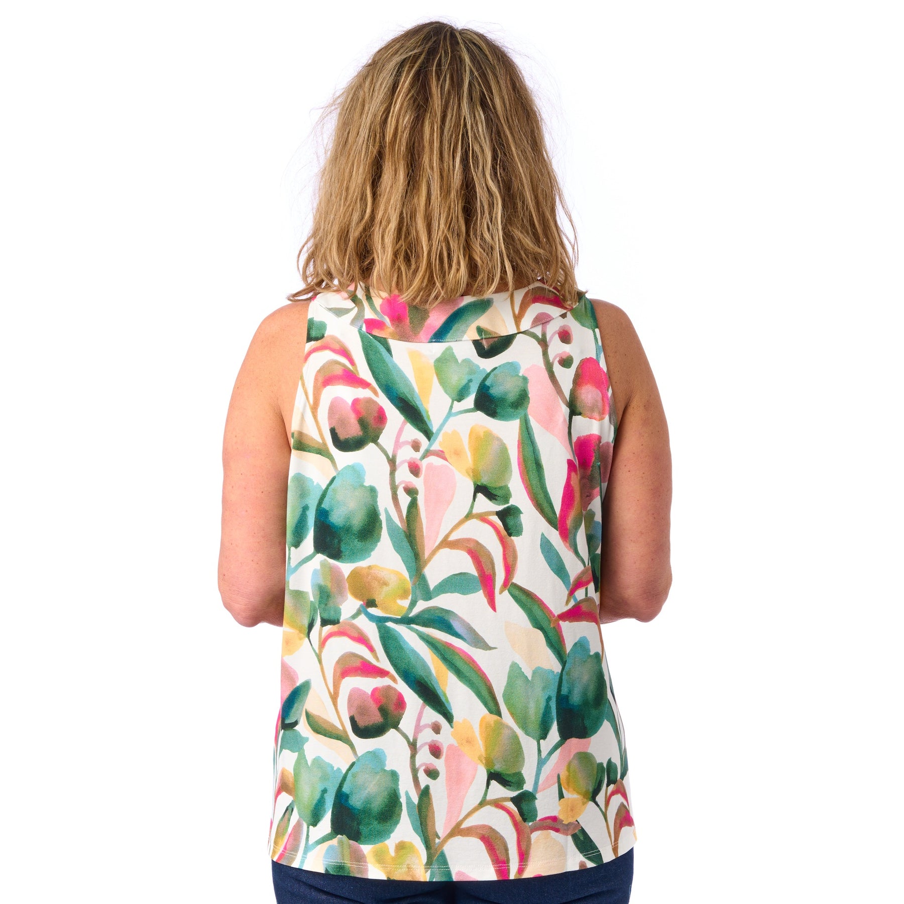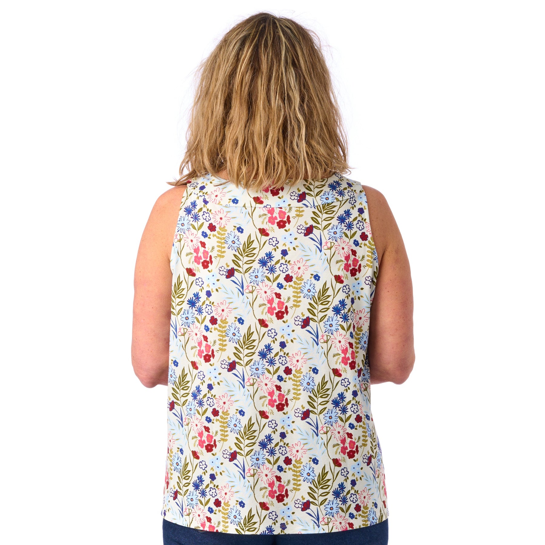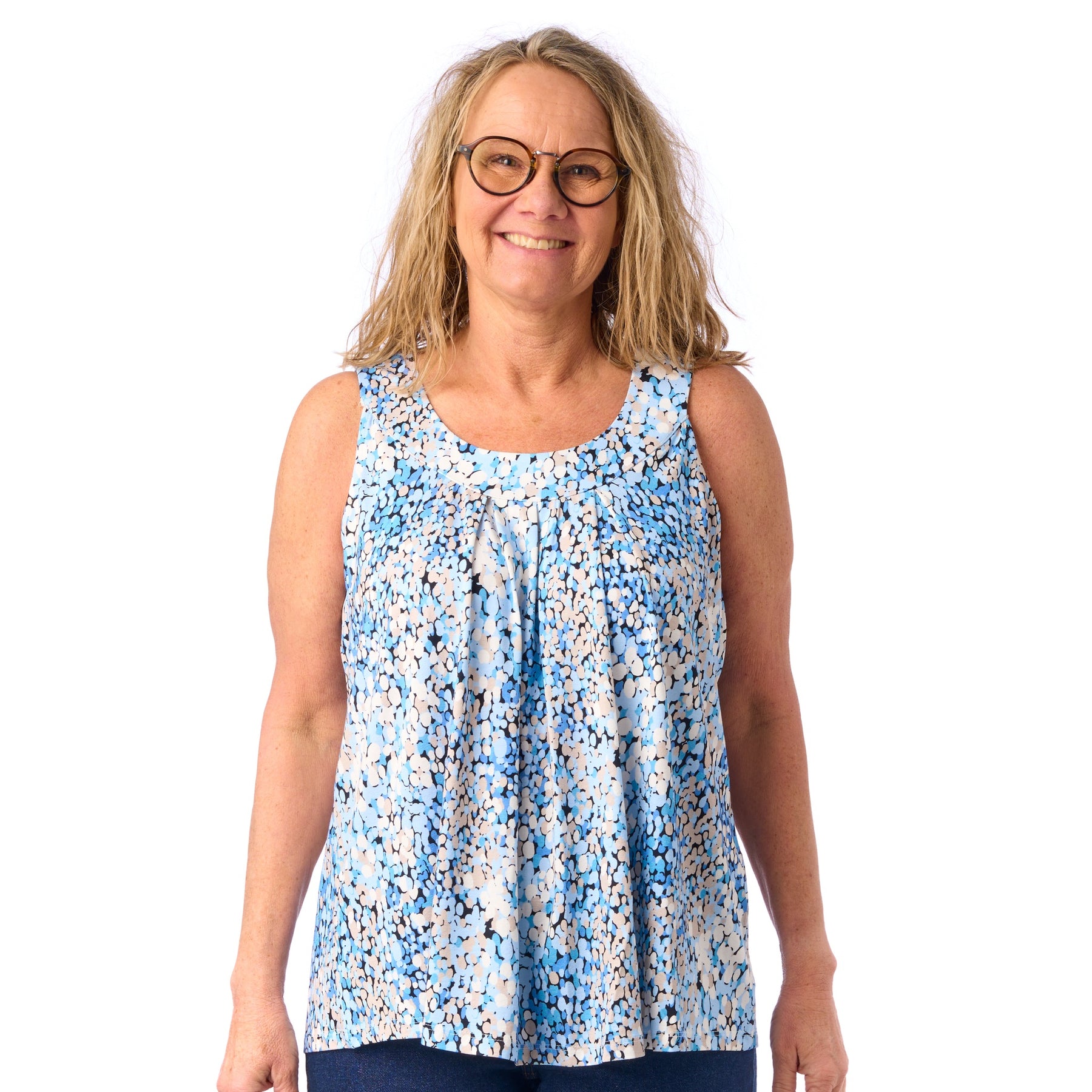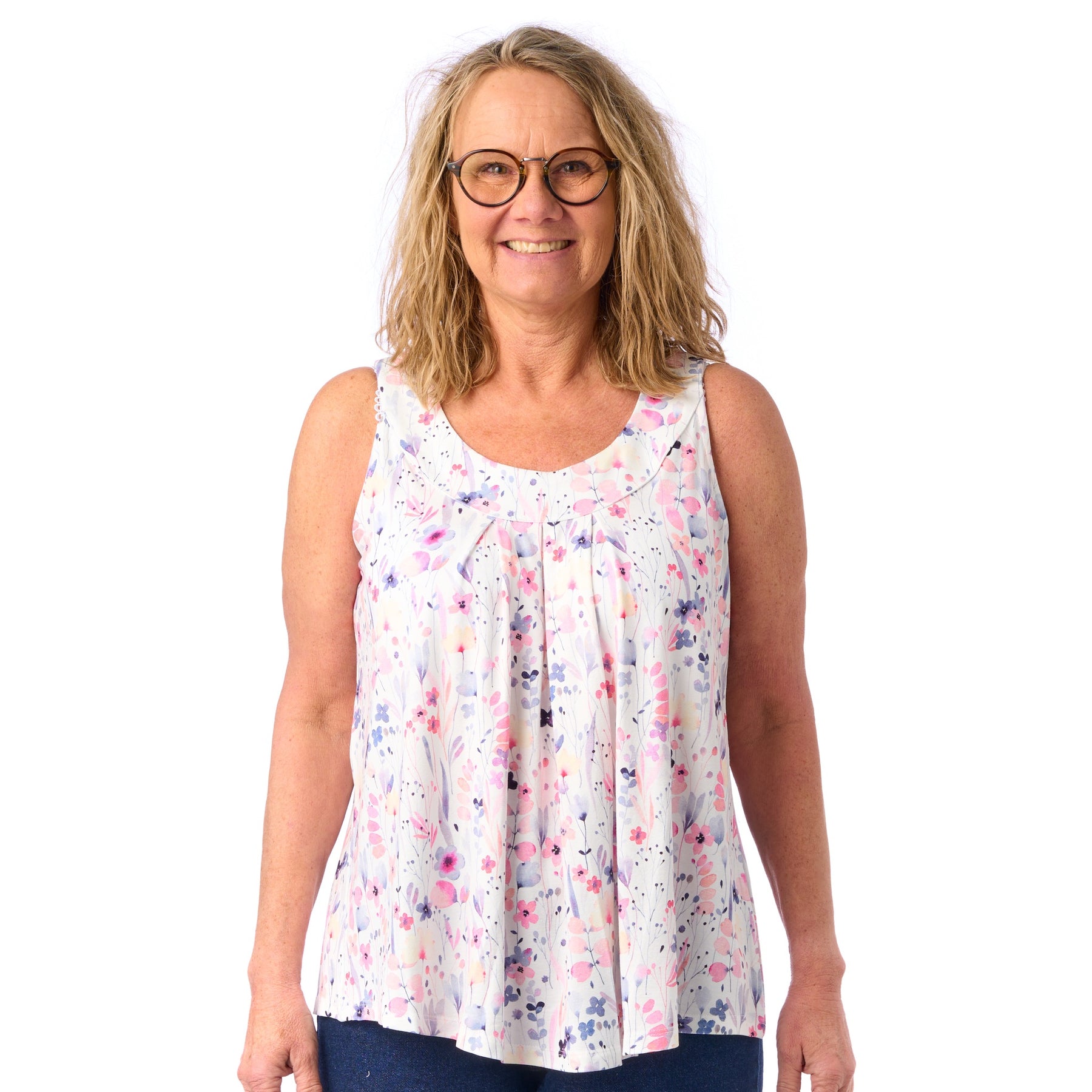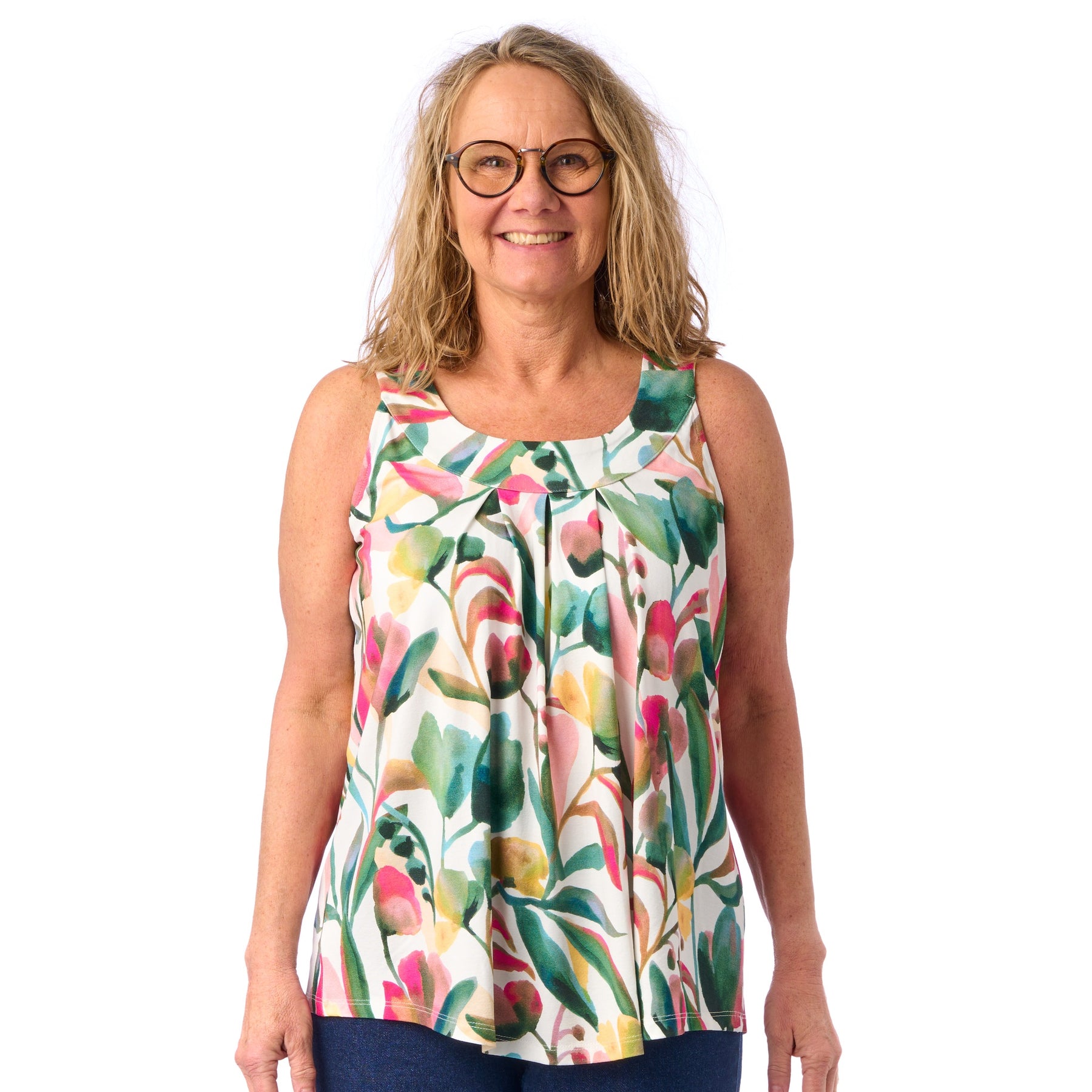I model Sonja kan du virkelig nyde sol og sommer, og uden at tænke på, om noget skarver eller strammer. Vi har nemlig tilpasset syningen i armhulen, så sommertoppen sidder fint til uden at stramme i armhulen eller over brystet 💕